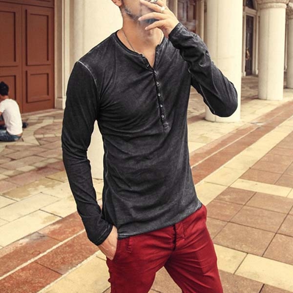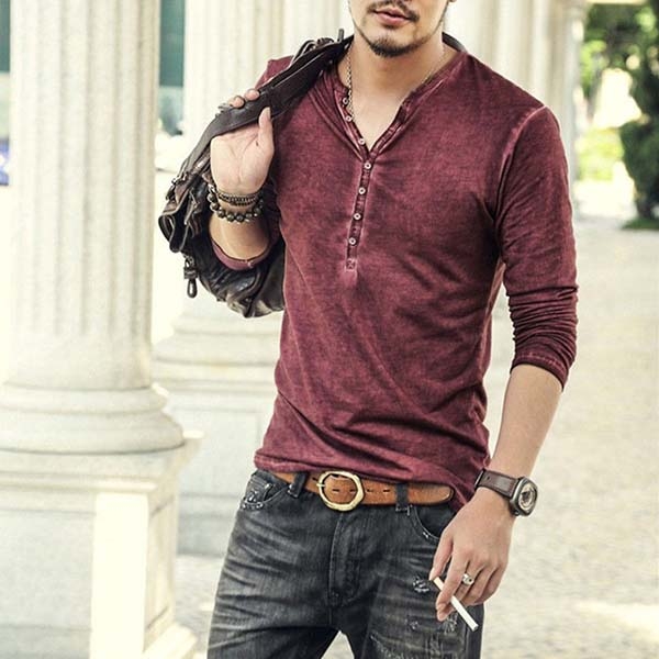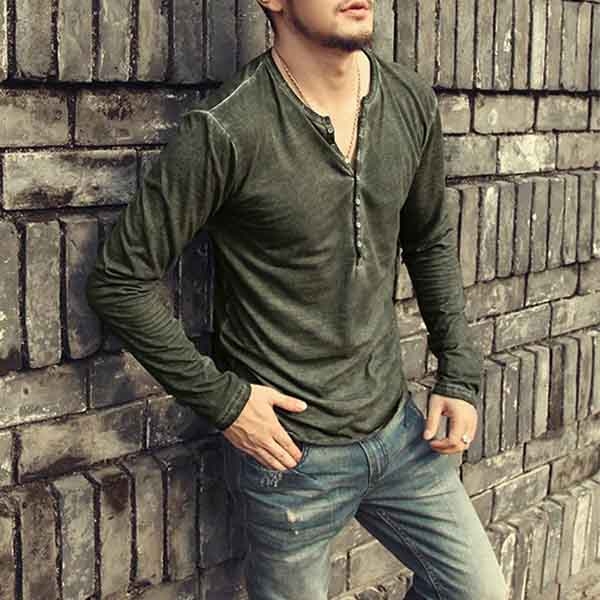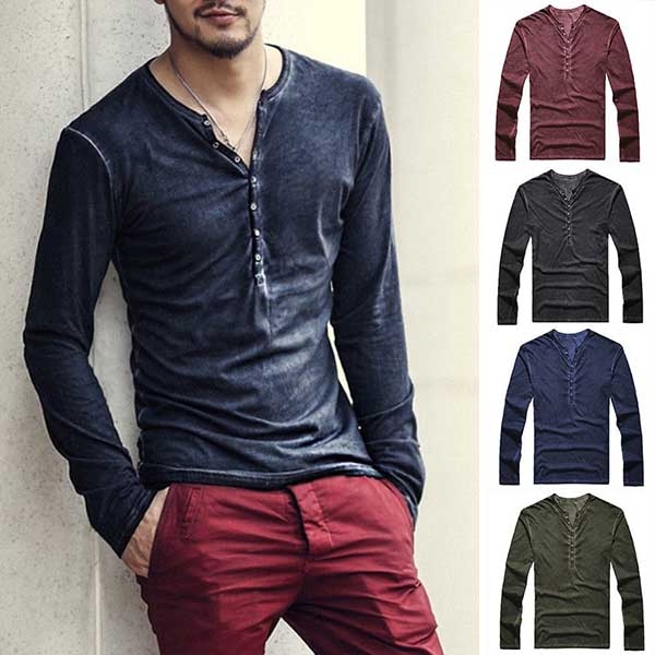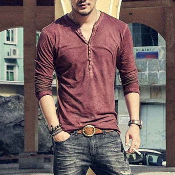 This t-shirt comes with a solid color,crafted from soft and breathable fabric,with long sleeve an v-neck design,