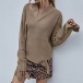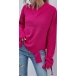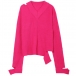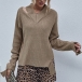 Fashion Solid Color Long Sleeve V-neck Ripped Sweater
