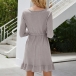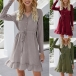 Fashion Solid Color Long Sleeve V-neck Ruffle Hem Dress