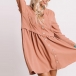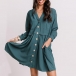 Fashion Solid Color Long Sleeve V-neck Single-breasted Dress