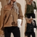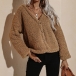 Fashion Solid Color Long Sleeve V-neck Single-breasted Plush Coat
