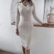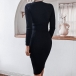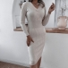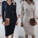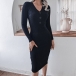 Fashion Solid Color Long Sleeve V-neck Slim Fit Knit Dress