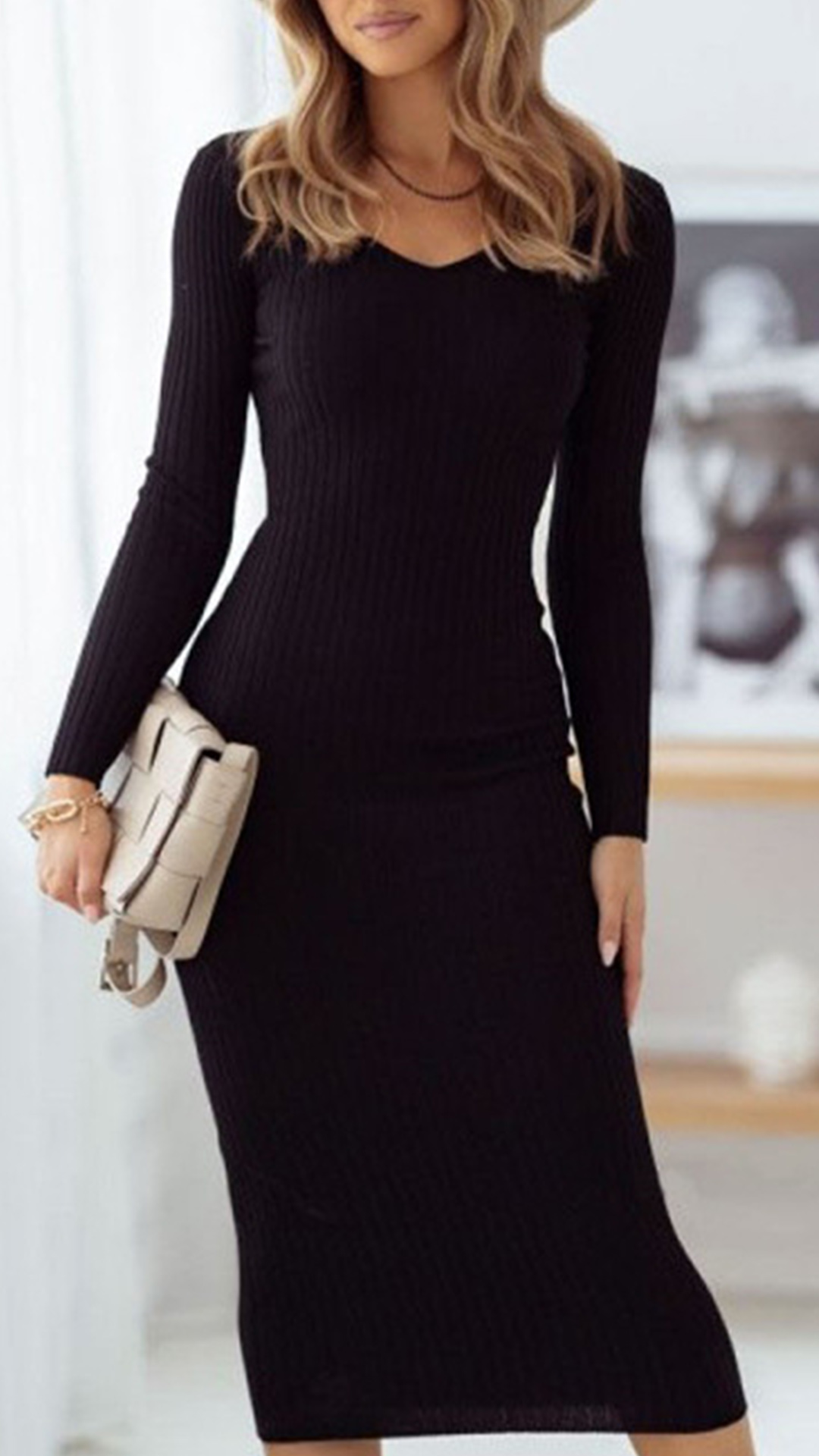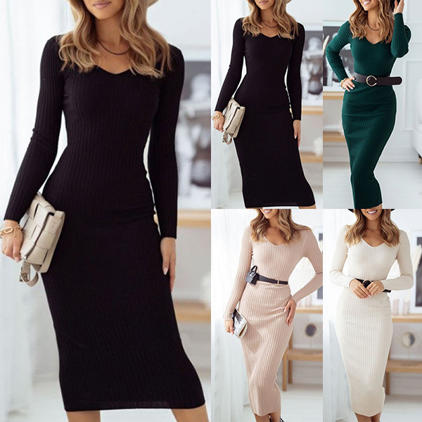 This knit dress that can be fit for different seasons is worth to arouse your attention. Solid color tone design makes it look simple yet generous. Finished with long sleeve,v-neck and a fit silhouette,this dress not only can exude your femininity,but also can showcase your slender figure. Like this style? Then just invite this piece to your wardrobe!