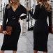 Fashion Solid Color Long Sleeve V-neck Slim Fit Twisted Knit Dress