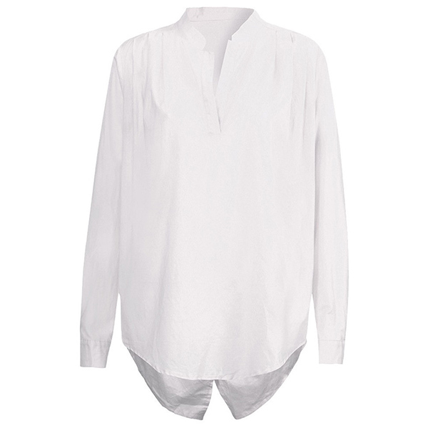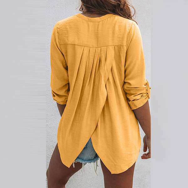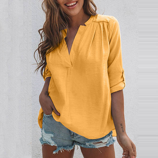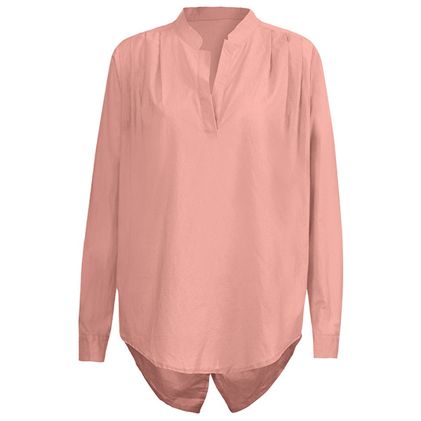 Fashion Solid Color Long Sleeve V-neck Slit Hem Blouse