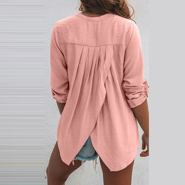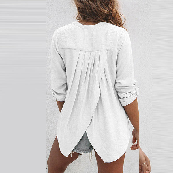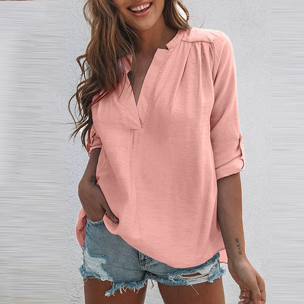 Attracted by this chic and stylish blouse? Then invite it to your wardrobe. It comes with a solid color,the slit hem design at back side will further enhance its charm,while the v-neck design can exude your feminine appeal. You can have a try it to update your style.