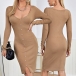 Fashion Solid Color Long Sleeve V-neck Slit Hem Front-button Sliim Fit Knit Dress