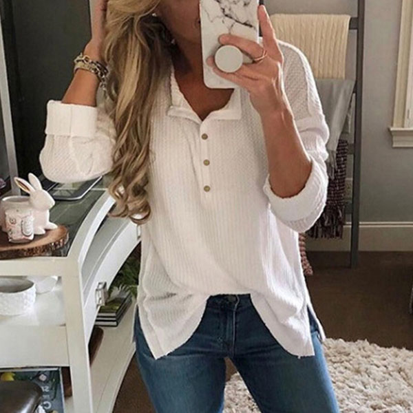 Nowadays most of the people know how to dress and improve themselves. If you are a fashion girl, you can find the unique beauty in this top. No matter the button details or the overall design, the feeling is particularly novel, and its fabric is breathable and cozy. If you like it, then take action immediately!