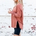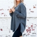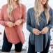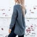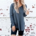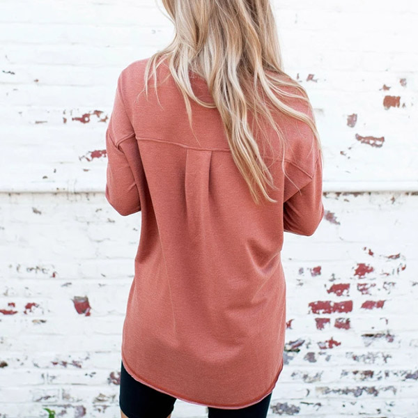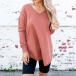 Fashion Solid Color Long Sleeve V-neck Slit Hem T-shirt