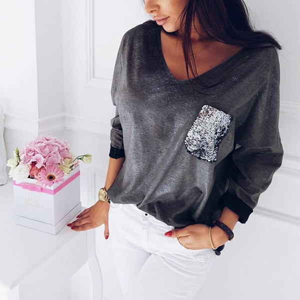 its sequin spliced chest patch pocket design is the highlight,which makes this piece more popular and attractive.