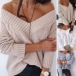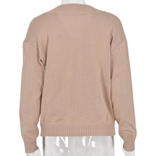 Fashion Solid Color Long Sleeve V-neck Sweater