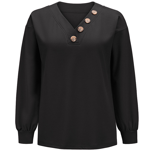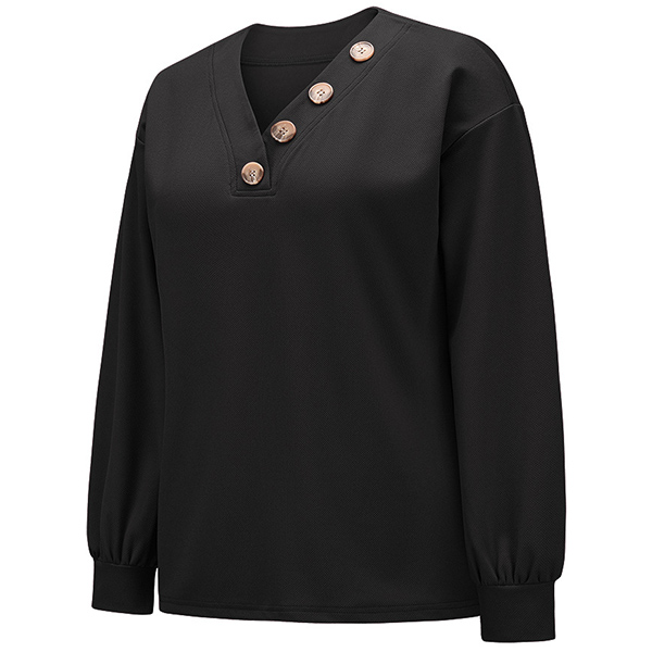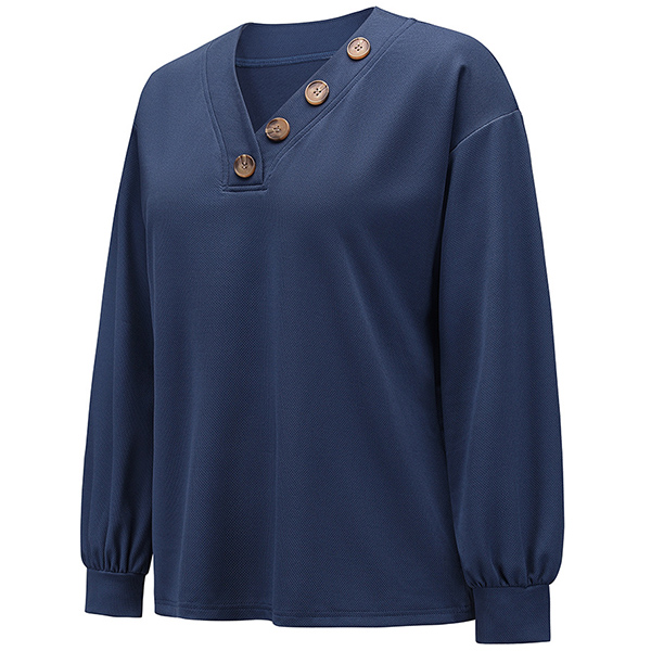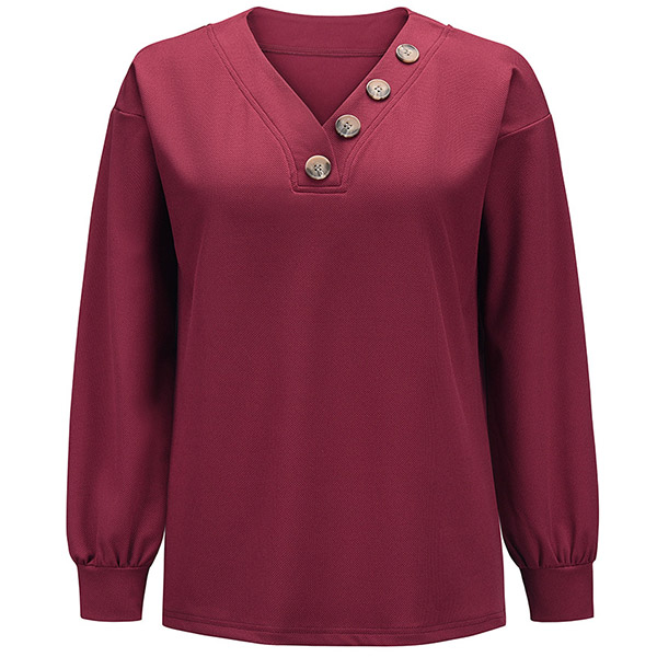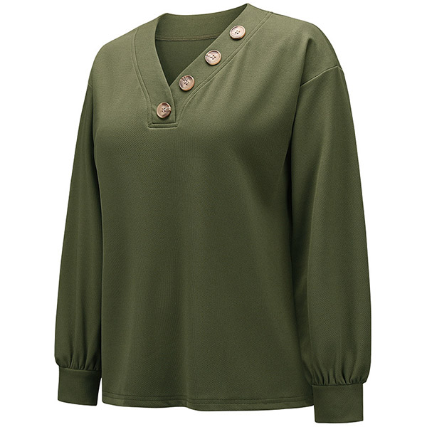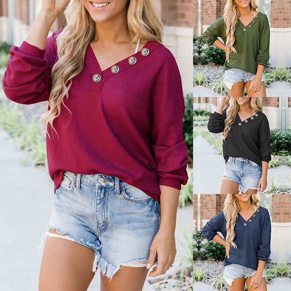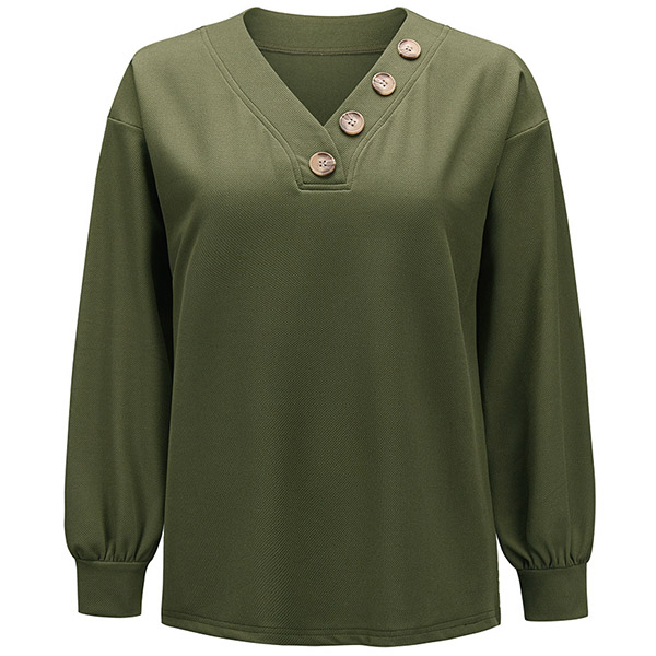 For the spring and autumn days,this long sleeve sweatshirt would be one of your best choices. Solid color tone design makes it look simple,stylish yet generous,while the v-neck and button details will further enhance its charm. Try to match with a jeans to have a laid-back but fashionable daily look.