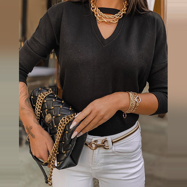 Combines of simple,cozy and stylish vibes,this t-shirt is yearning for a place in your wardrobe. It comes with a solid color,the unique v-neck design is the highlight,which can exude your style and charming feminine appeal. Thanks to the all-match design,this t-shirt allows to be matched with different style bottoms.