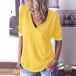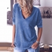 Fashion Solid Color Long Sleeve V-neck T-shirt