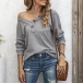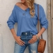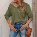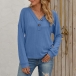 Fashion Solid Color Long Sleeve V-neck T-shirt