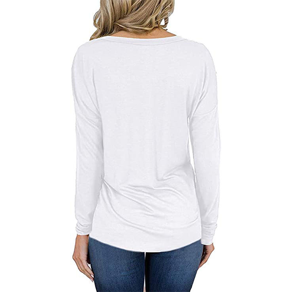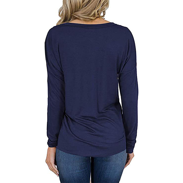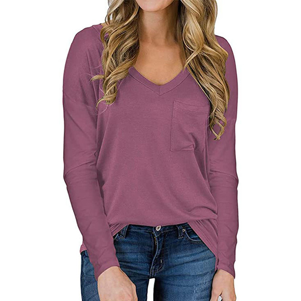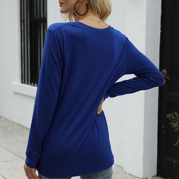 Fashion Solid Color Long Sleeve V-neck T-shirt