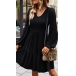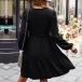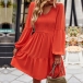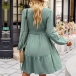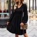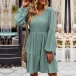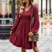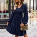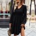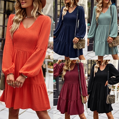 Fashion Solid Color Long Sleeve V-neck Tiered Dress
