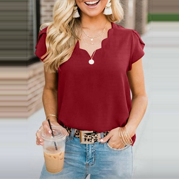 Your wardrobe calls for such a simple,cozy,stylish and all-match top. It boasts a solid color,finished with short sleeve and v-neck design,this piece not only can give you a comfortable day,but also can be matched with different style bottoms. So why not take interest in it?