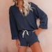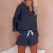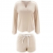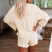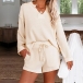 Fashion Solid Color Long Sleeve V-neck Top + Shorts Two-piece Set