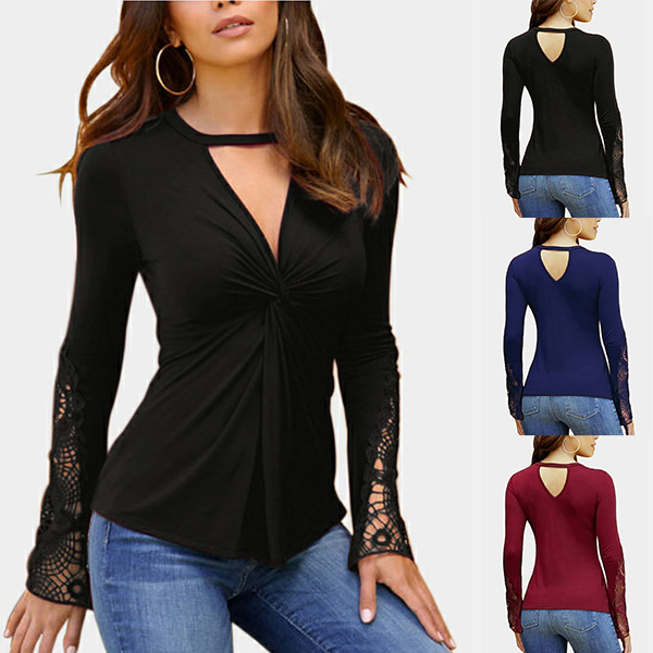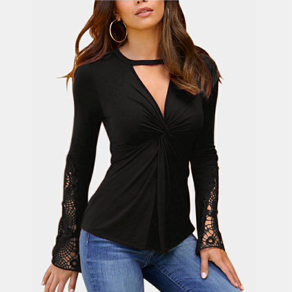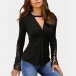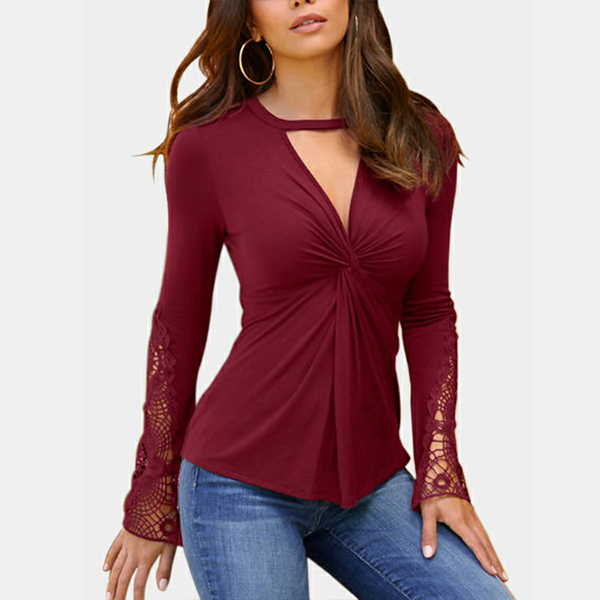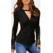 Fashion Solid Color Long Sleeve V-neck Twisted T-shirt