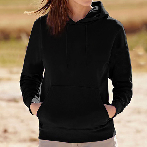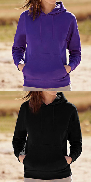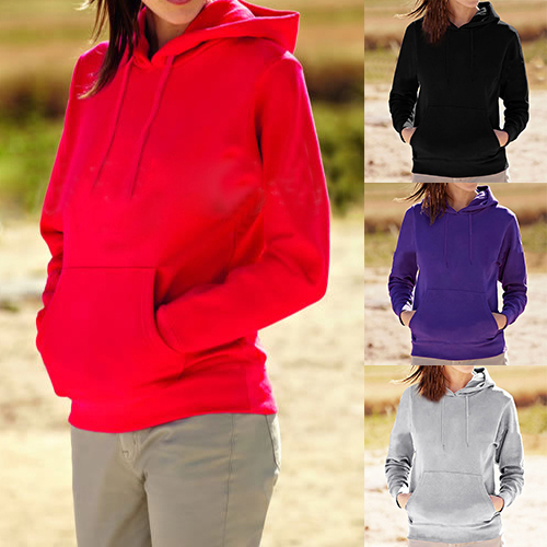 This hoodie is solid color and it is designed with long cuffed sleeves. Moreover, there is a drawstring