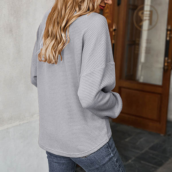 Fashion Solid Color Long Sleve Knotted Hem Knit Top