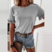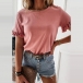 Fashion Solid Color Lotus Sleeve Round Neck T-shirt