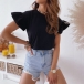 Fashion Solid Color Lotus Sleeve Round Neck T-shirt