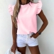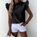 Fashion Solid Color Lotus Sleeve Round Neck Top