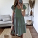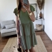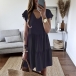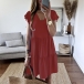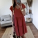 Fashion Solid Color Lotus Sleeve V-neck Loose Dress