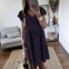 For your rushed mornings,you must have no time to think about what o wear. So we suggest you this easy-to-wear dress. It comes with a solid color,the v-neck and lotus sleeve design can lend you some sweet and feminine vibes,while the loose silhouette design will maintain the comfy and casual sense.