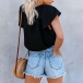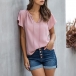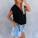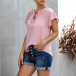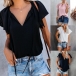 Fashion Solid Color Lotus Sleeve V-neck Top