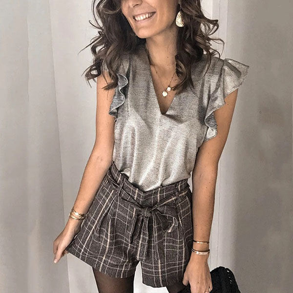 For these hot summer days,your wardrobe needs such a cozy yet stylish top. Comes with a solid color,the lotus sleeve and v-neck design make this piece look not so simple and dull,while its soft and breathable fabric can promise you a comfortable day. It can be matched with different style bottoms to offer you different fashion styles.