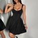 Fashion Solid Color Low-cut U-neck Backless Mini Dress