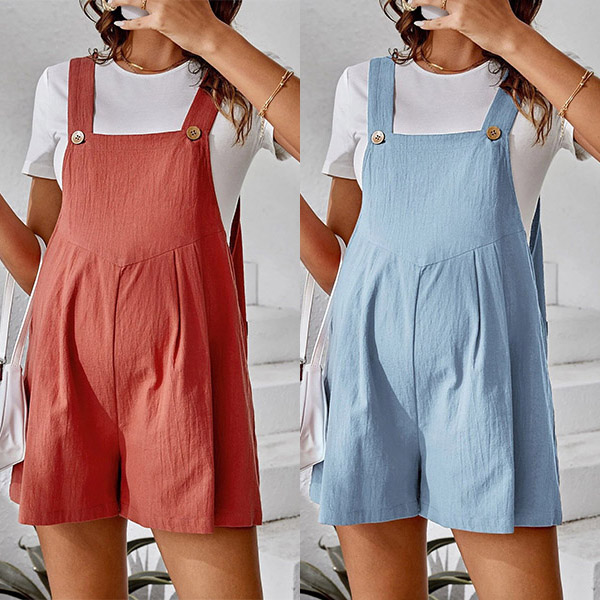 This romper is crafted with your comfort in mind, using soft materials that provide a comfortable and loose design to accommodate your changing body throughout pregnancy. The solid color adds simplicity and versatility, making it easy to accessorize and style for various occasions.