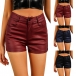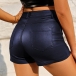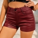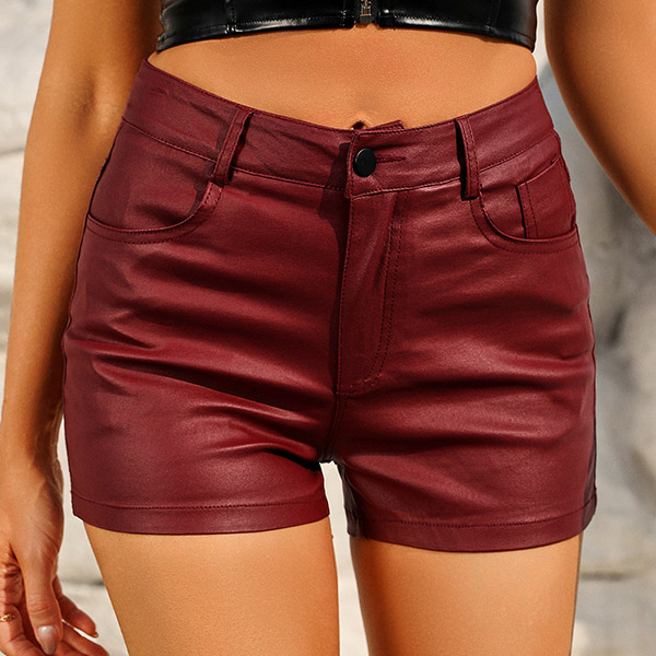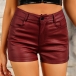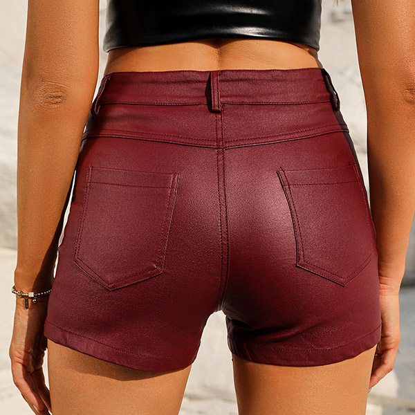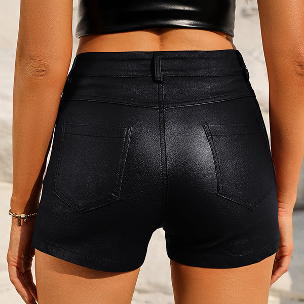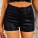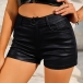 Fashion Solid Color Mid-rise Artificial Leather PU Shorts