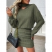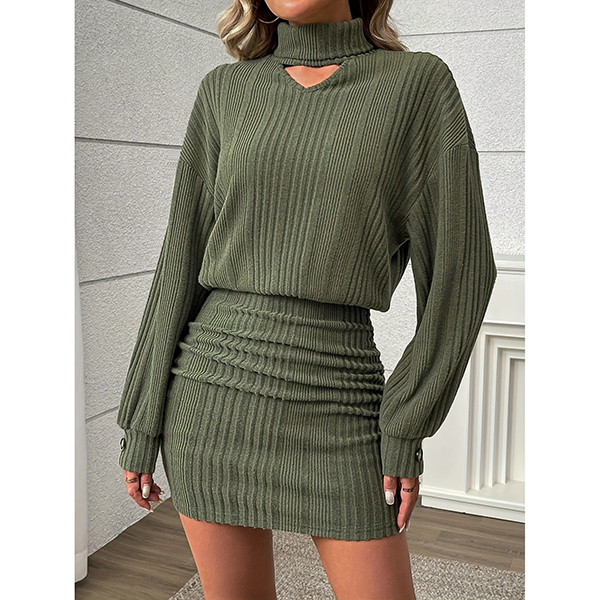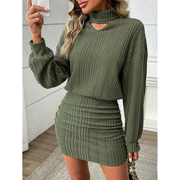 Fashion Solid Color Mock Neck Front Cutout Ribbed Bodycon Dress