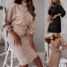 Fashion Solid Color Mock Neck Lantern Sleeve Bodycon Dress