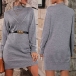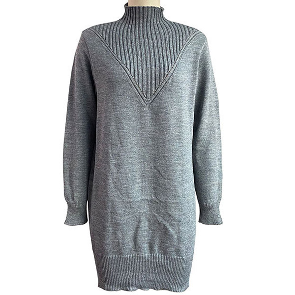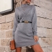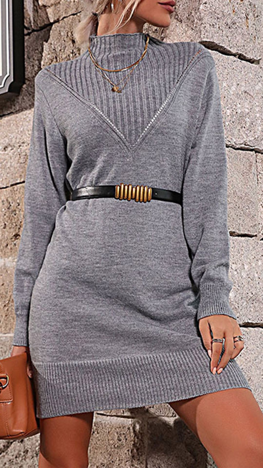 Fashion Solid Color Mock Neck Long Sleeve Knitted Sweater Dress