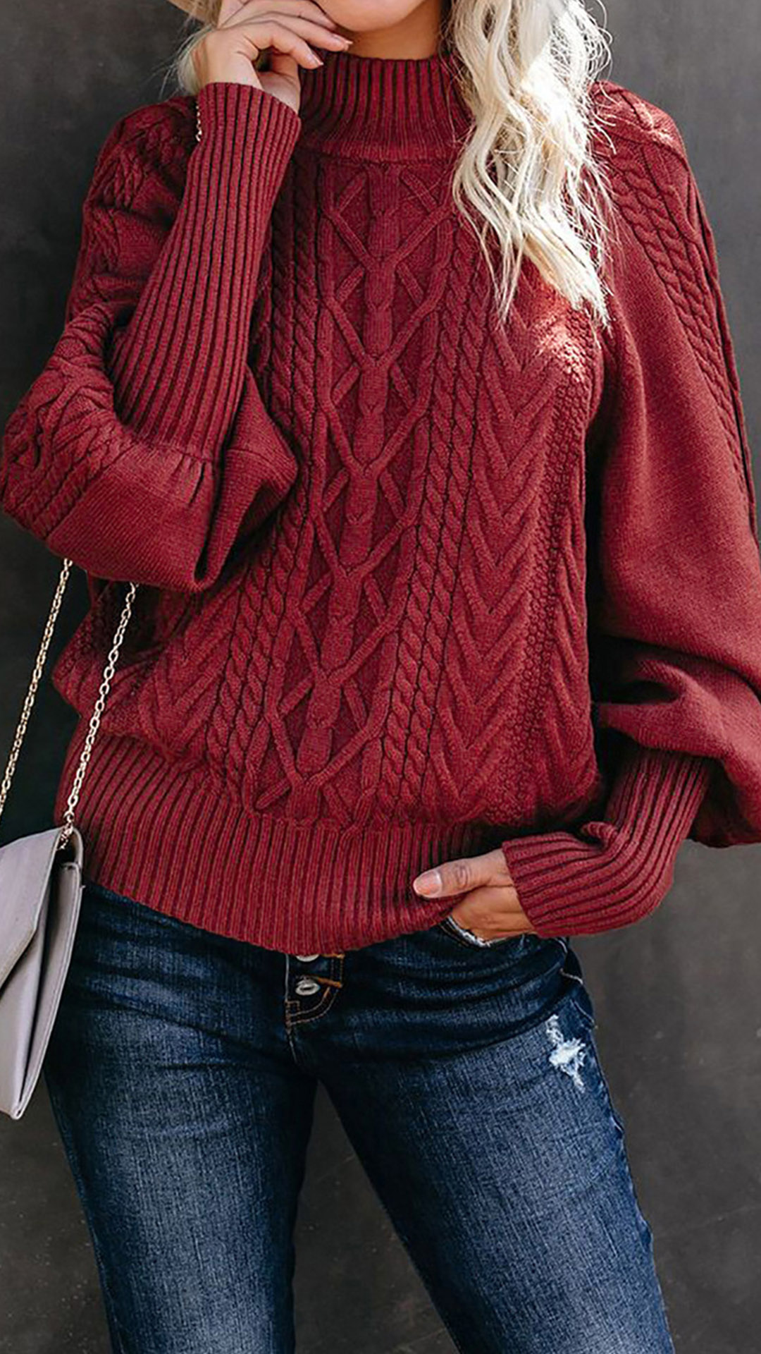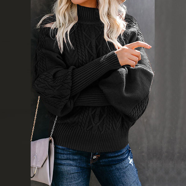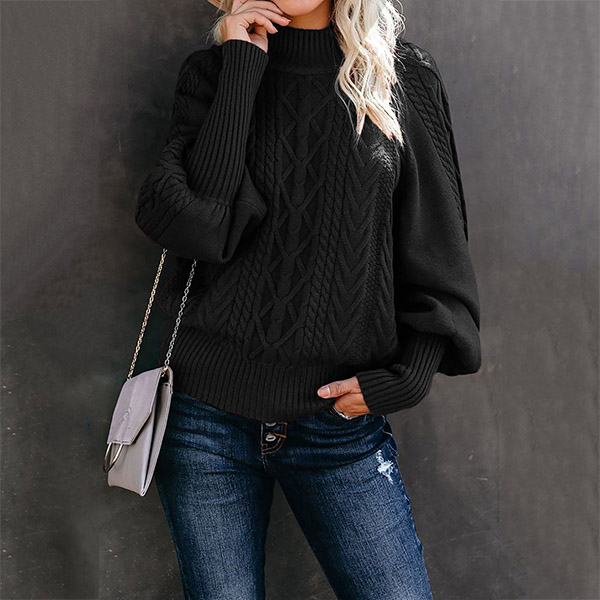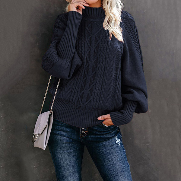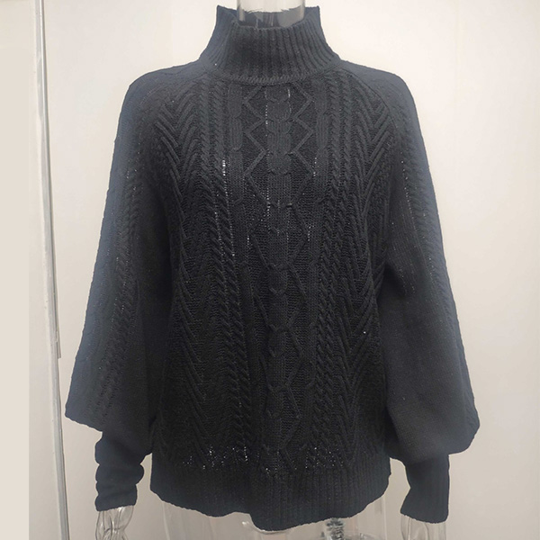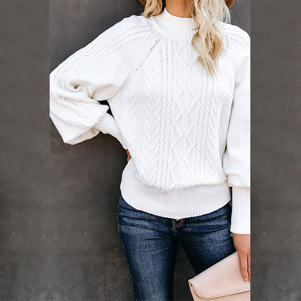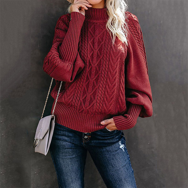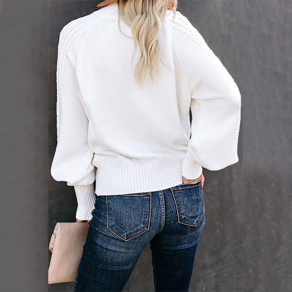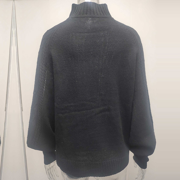 Fashion Solid Color Mock Neck Long Sleeve Knitted Sweater