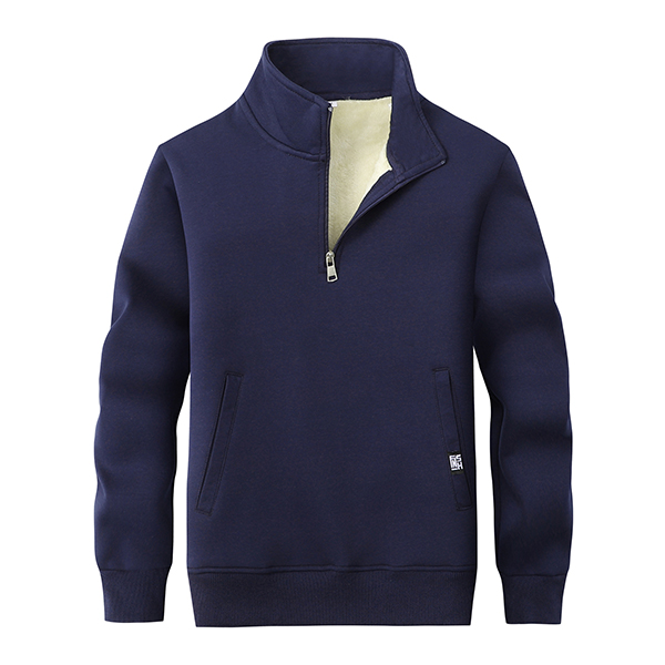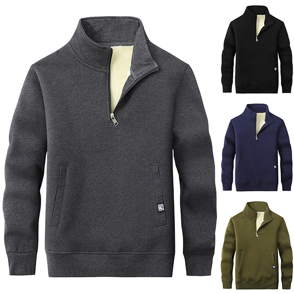 Fashion Solid Color Mock Neck Long Sleeve Plush Lamb Fleece Lined Shirt for Men