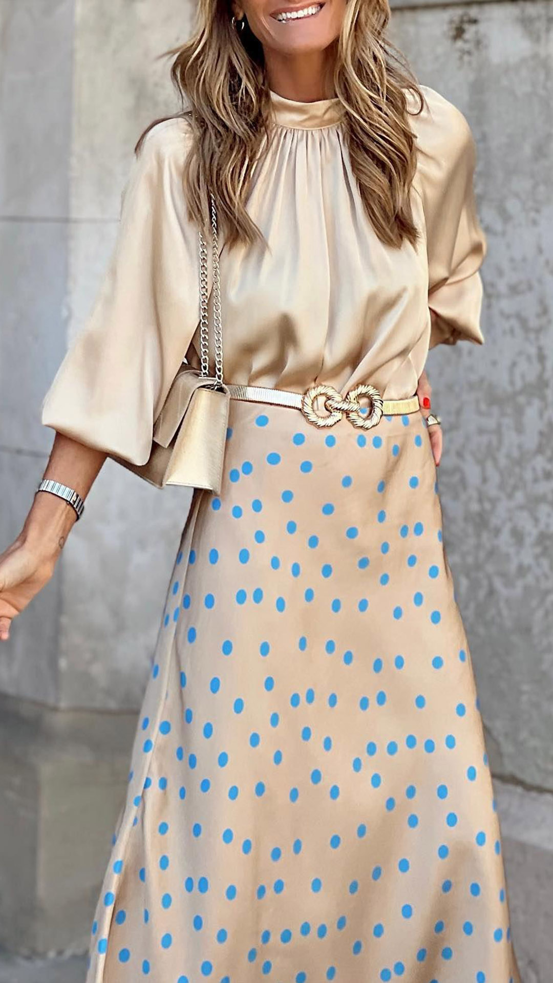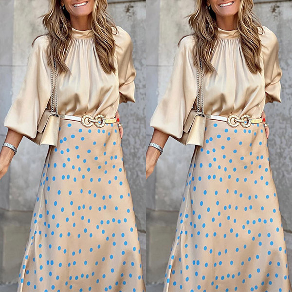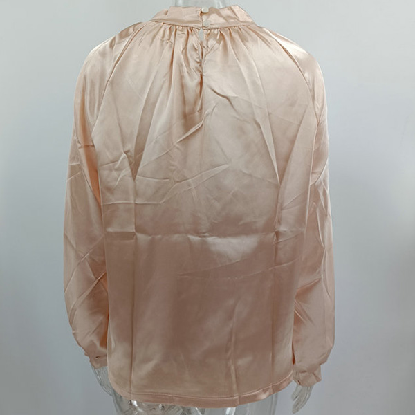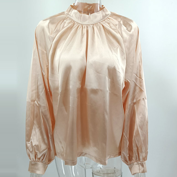 Fashion Solid Color Mock Neck Long Sleeve Satin Shirt