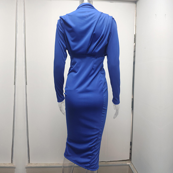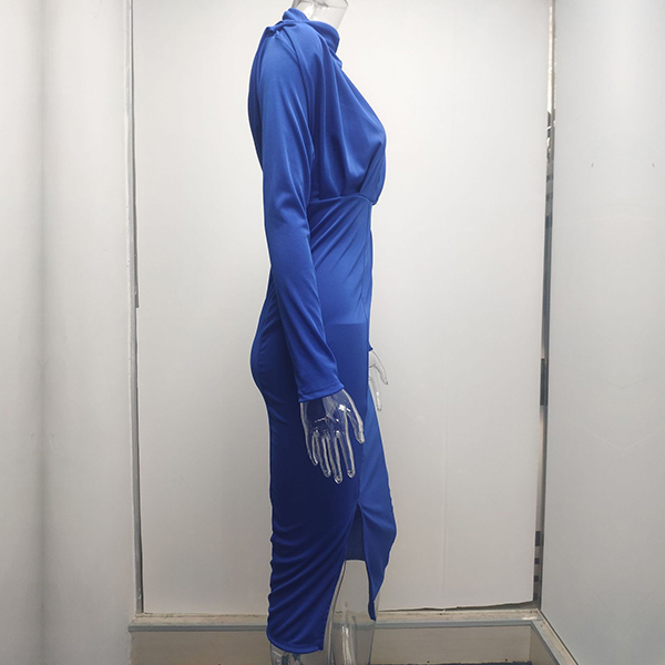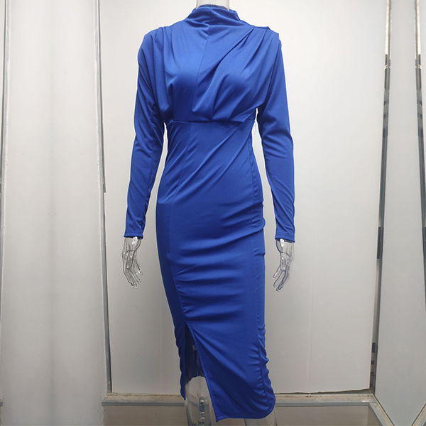 Fashion Solid Color Mock Neck Long Sleeve Slit Bodycon Dress
