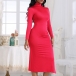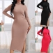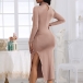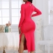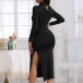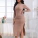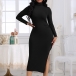 Fashion Solid Color Mock Neck Long Sleeve Slit Bodycon Dress