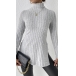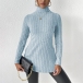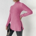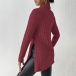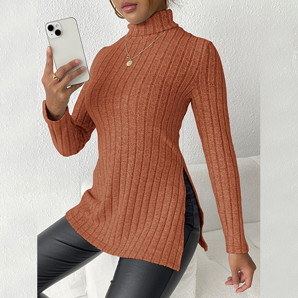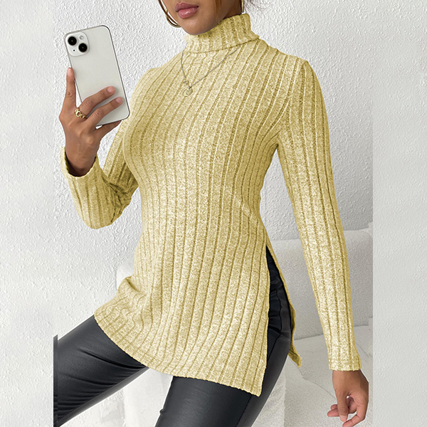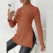 Fashion Solid Color Mock Neck Long Sleeve Slit Ribbed Shirt