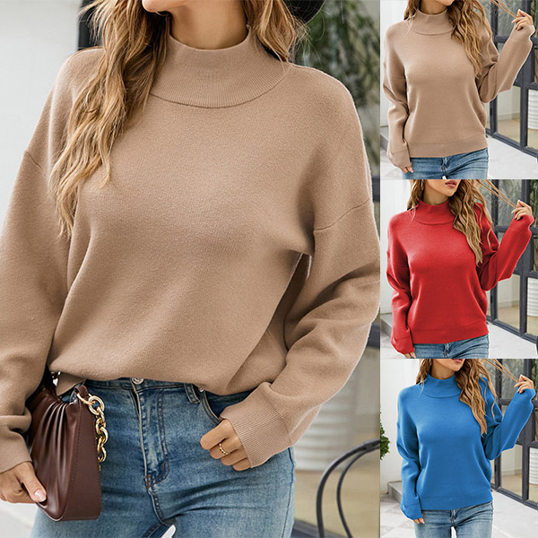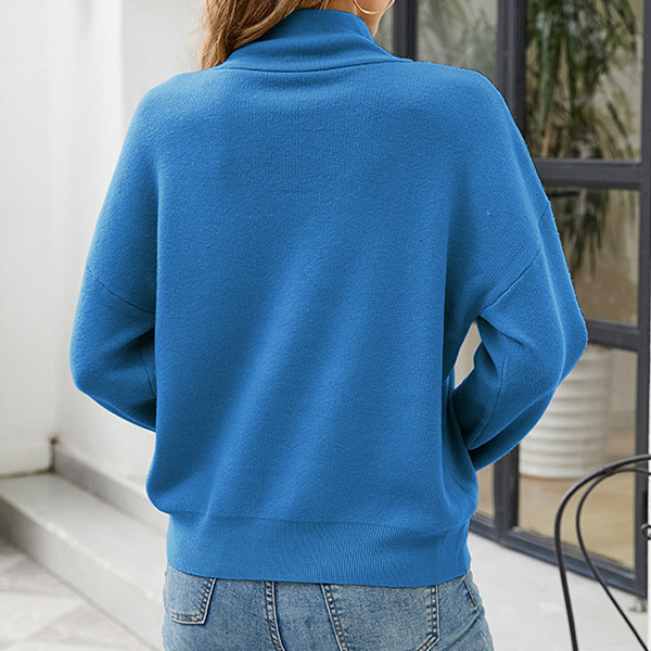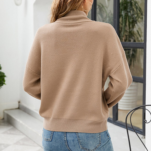 Fashion Solid Color Mock Neck Long Sleeve Sweater
