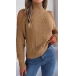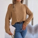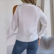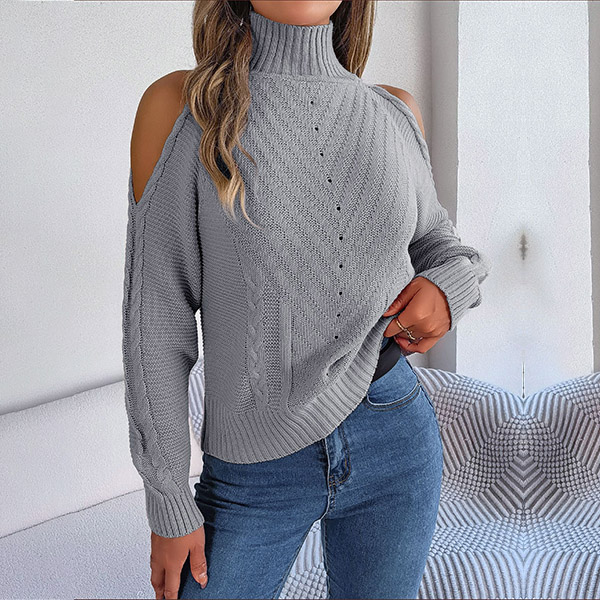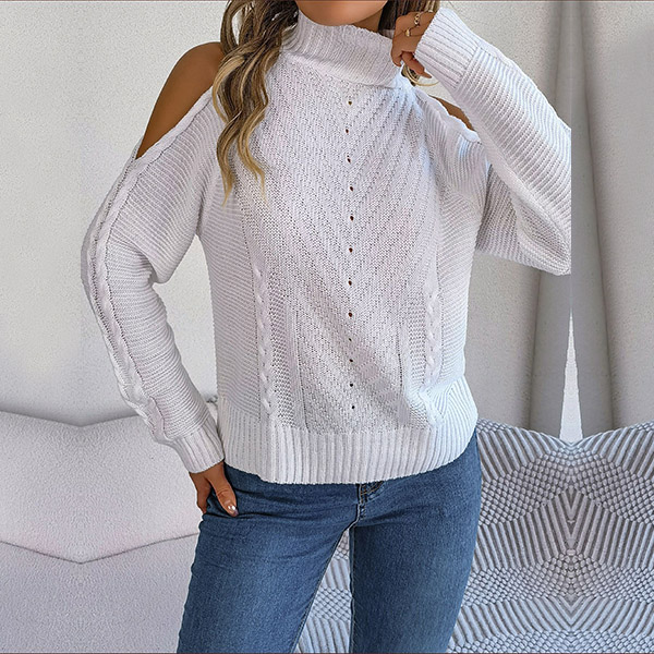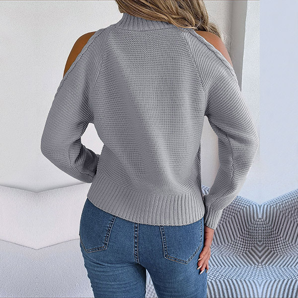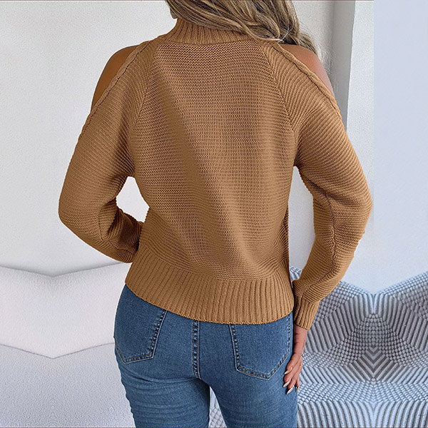 Fashion Solid Color Mock Neck Open Shoulder Long Sleeve Knitted Sweater
