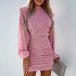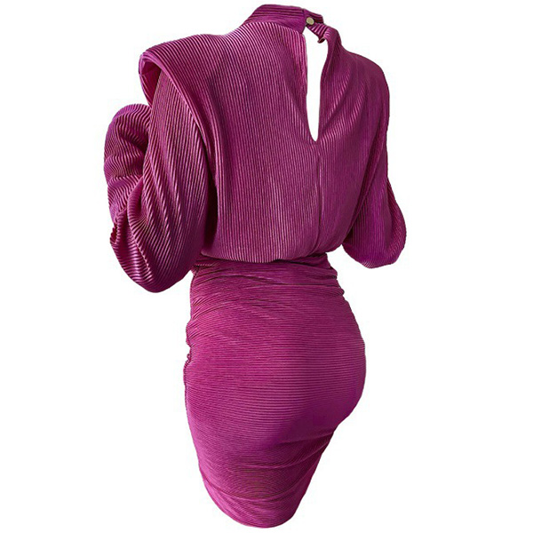 Fashion Solid Color Mock Neck Puff Long Sleeve Ruched Bodycon Dress