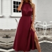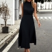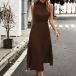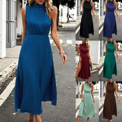 Fashion Solid Color Mock Neck Sleeveless Midi Dress