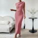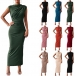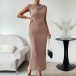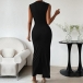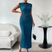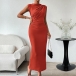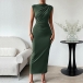 Fashion Solid Color Mock Neck Sleeveless Ruched Bodycon Midi Dress